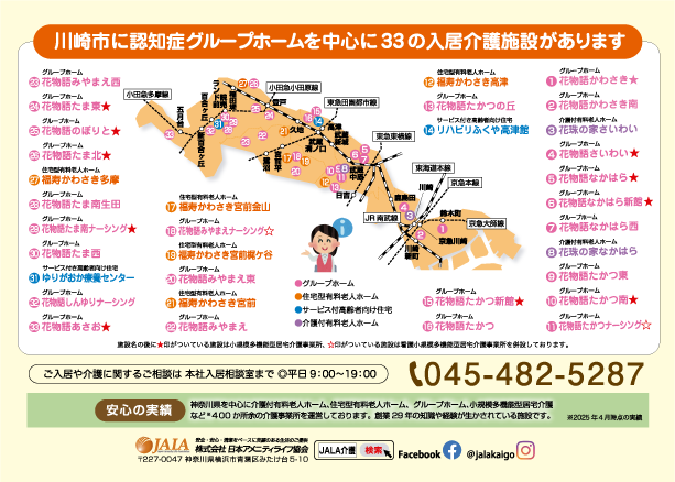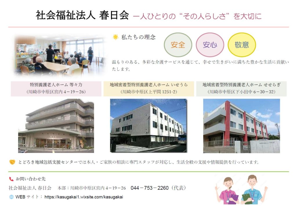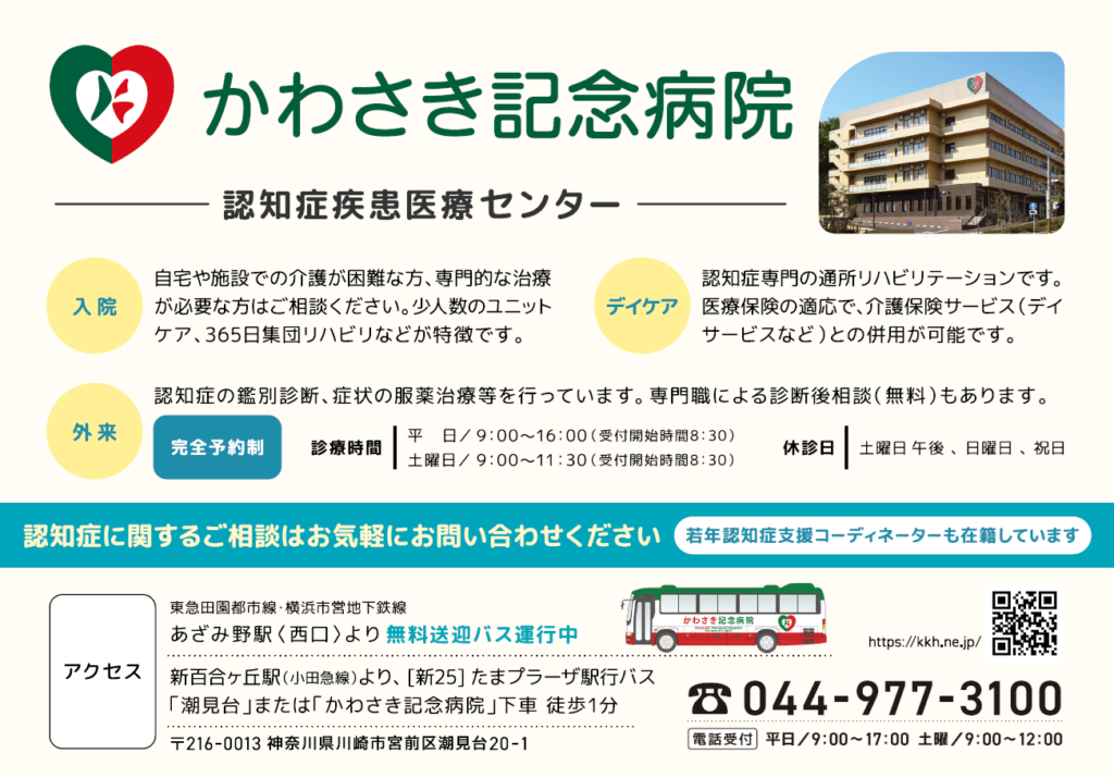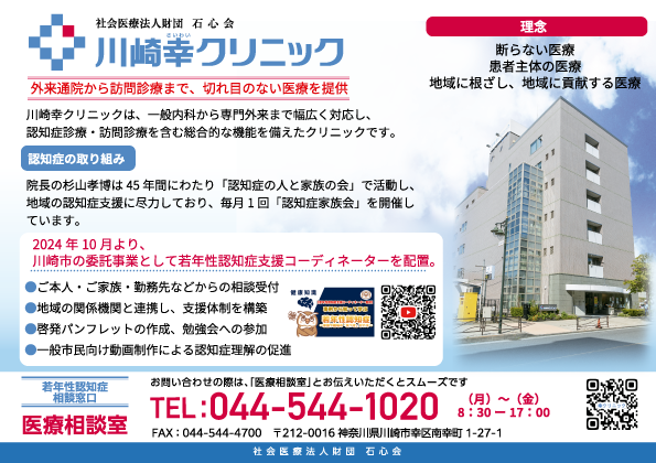 後援・協賛団体 2025-10-072026-01-01 後援(順不同) ●行政 厚生労働省 神奈川県 川崎市 ●当事者団体 一般社団法人 日本認知症本人ワーキンググループ 公益社団法人 認知症の人と家族の会神奈川県支部 ●認知症ケア関係団体 社会福祉法人 浴風会 認知症介護研究・研修東京センター 一般社団法人 全国認知症介護指導者ネットワーク 川崎市認知症介護指導者会 川崎市認知症ネットワーク ●医療関係団体 公益社団法人 川崎市医師会 一般社団法人 川崎市薬剤師会 社会医療法人財団石心会 川崎幸クリニック ☆川崎市認知症疾患医療センター 聖マリアンナ医科大学病院 日本医科大学武蔵小杉病院 医療法人三星会 かわさき記念病院 川崎市立川崎病院 協賛(順不同) 一般社団法人 SPSラボ若年認知症サポートセンターきずなや 特定非営利活動法人 ぷらいどらんど 総合川崎臨港病院 かわさき記念病院 株式会社 サン(リボン認知症保険) 社会福祉法人 春日会 株式会社浅井ゲルマニウム研究所 株式会社ピースウェーブ グループホーム朝日のあたる家 JALA(日本アメニティライフ協会) 川崎幸クリニック