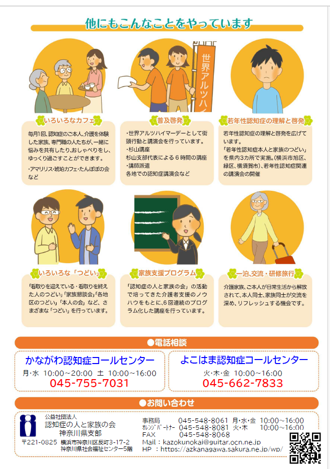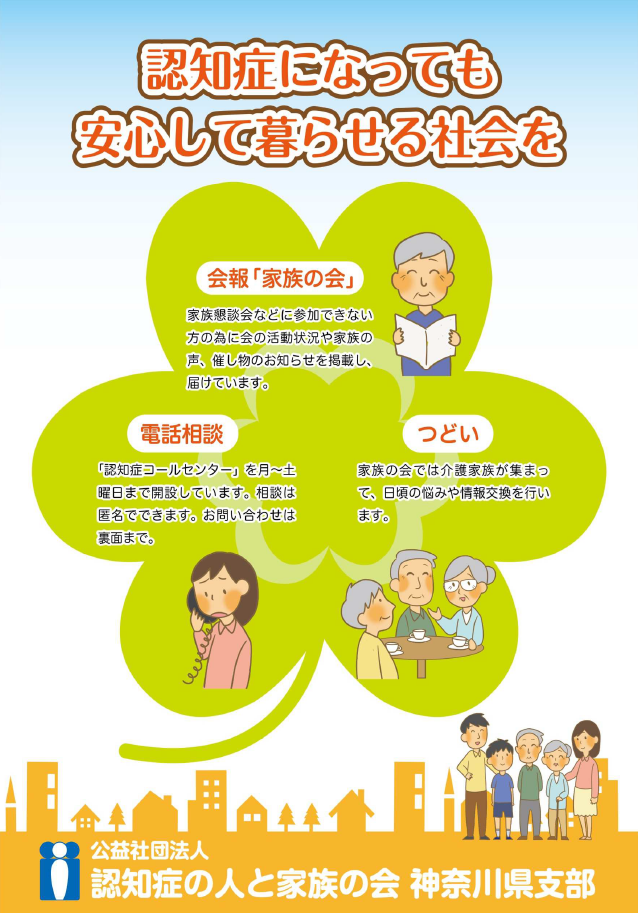 神奈川県支部では、本部発行の会報『ぽーれぽーれ』を毎月、支部会報を奇数月に会員の皆さまへお届けしています。電話相談では、神奈川県・横浜市からの委託を受け「認知症コールセンター」を運営し、年間約2,600件の相談に応じています。